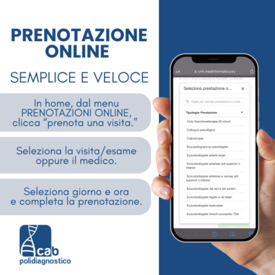 Con oltre 450 specialisti e 9 sedi sul territorio, Cab offre un servizio completo di visite specialistiche, esami e diagnostica.